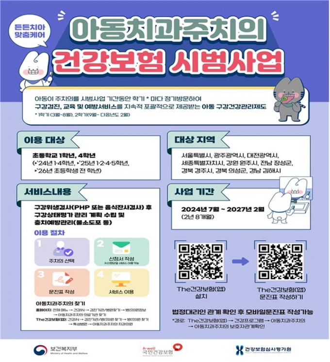 ¿ÃÇØ ½Ã¹ü»ç¾÷ ´ë»óÀº ÃʵîÇб³ 1Çгâ°ú 4Çг⠾Ƶ¿ÀÌ´Ù. À̵éÀº »ç¾÷±â°£ÀÎ 2³â 8°³¿ù¿©°£ ÁÖÄ¡ÀÇ·Î µî·ÏÇÑ Ä¡°úÀÇ¿øÀ» Çб⺰ 1ȸ(ÃÑ 6ȸ) Á¤±â¹æ¹®ÇØ ±¸°°ËÁøÀ» ¹Þ´Â´Ù. À̸¦ ÅëÇØ ±¸°»óÅÂÆò°¡, ±¸°À§»ý°Ë»ç(PHP), Ä©¼ÖÁú±³À°, ºÒ¼ÒµµÆ÷ µî ±¸°°ü¸® ±³À° ¹× ¿¹¹æÀ» Á¦°ø¹Þ´Â´Ù.