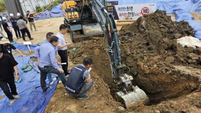 ÇöÀåÁ¶»ç´Â Àϰî±Ù¸°°ø¿ø¿¡¼ ÀÓ½ÃÀûÄ¡ÀåÀ¸·Î ¿Å±ä Åä»ç·®ÀÇ ÃøÁ¤, °ÇÃàÆó±â¹° ¸Å¸³ À¯¹«¿¡ ´ëÇÑ È®ÀÎ ÀÛ¾÷À̾ú´Ù. °Ç¼³³ëÁ¶ ÃøÀº ÀÓ½ÃÀûÄ¡Àå Åä»ç·® È®ÀÎÀ» À§ÇØ ÁÙÀÚ¸¦ ÀÌ¿ë ±æÀÌ¿Í ÆøÀ» ÃøÁ¤Çß°í, ½Ã°ø»ç´Â ±¼»è±â¸¦ ÀÌ¿ëÇØ ÅÍÆÄ±â ÈÄ ³ôÀ̸¦ ÃøÁ¤Çß´Ù.