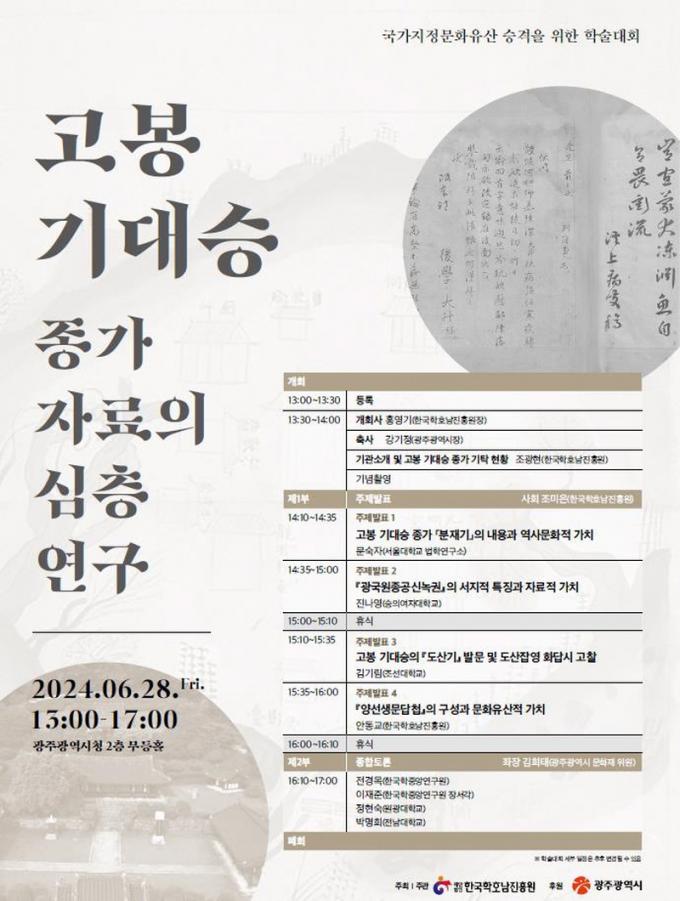 [È£³²´º½º¶óÀÎ = ¼ÀºÈ« ±âÀÚ] ±¤ÁÖ±¤¿ª½Ã(½ÃÀå °±âÁ¤)´Â (Àç)Çѱ¹ÇÐÈ£³²ÁøÈï¿ø°ú ÇÔ²² È£³² ´ëÇ¥ ¸íÇöÀ» ¹èÃâÇÑ ÇàÁÖ ±â¾¾ Á¾°¡ ¼ÒÀåÀڷḦ ±¹°¡ÁöÁ¤¹®ÈÀ¯»êÀ¸·Î ½Â°ÝÇϱâ À§ÇÑ Çмú´ëȸ¸¦ 28ÀÏ ¿ÀÈÄ 1½Ã ½Ãû ¹«µîȦ¿¡¼ ¿¬´Ù.
