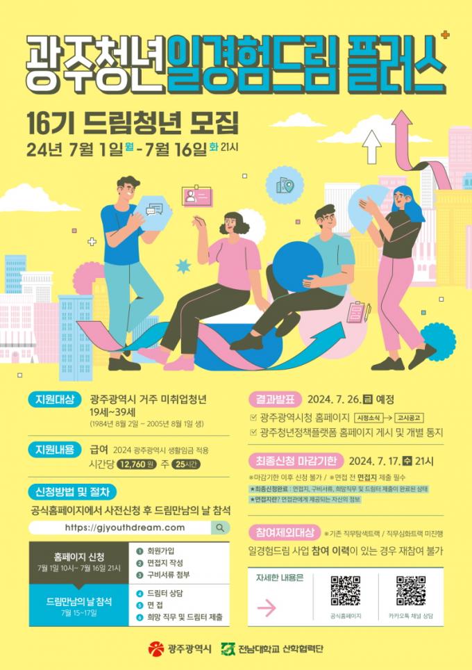 ±¤Áֽô û³â°ú »ç¾÷ÀåÀÇ ÀϰæÇè ¿¬°è¸¦ À§ÇØ 16±â µå¸²ÅÍ(Âü¿© »ç¾÷Àå)·Î Çѱ¹Àü·Â°Å·¡¼Ò, ±¤Áֽſ뺸ÁõÀç´Ü, Çѱ¹¾ËÇÁ½º¢ß, ¢ßÇØ¾ç¿¡³ÊÁö, ¢ß¹«µî±â¾÷ µî ±¤ÁÖ¿Í ±¤ÁÖÀü³²°øµ¿Çõ½Åµµ½Ã °ø°ø±â°ü, Áö¿ª Áß¼Ò‧Áß°ß±â¾÷, â¾÷±â¾÷, »çȸÀû°æÁ¦±â¾÷, »çȸº¹Áö±â°ü µî 290¿©°÷À» ¸ðÁýÇß´Ù. Âü¿©µå¸²ÅÍ¿¡ ´ëÇÑ Á¤º¸¿Í ÀϰæÇè Á¦°ø Á÷¹«´Â ±¤ÁÖû³â ÀϰæÇèµå¸² ´©¸®Áý¿¡¼ È®ÀÎÇÒ ¼ö ÀÖ´Ù.