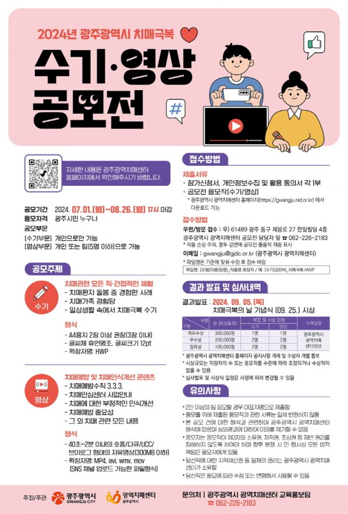 [È£³²´º½º¶óÀÎ = ¼ÀºÈ« ±âÀÚ] ±¤ÁÖ±¤¿ª½Ã(½ÃÀå °±âÁ¤)´Â Ä¡¸Å ȯÀÚ¿Í °¡Á·, Ä¡¸Å½Ã¼³ Á¾»çÀڵ鿡°Ô Èñ¸Á°ú ¿ë±â¸¦ ÀüÇϰí Ä¡¸Å¿¡ ´ëÇÑ ÀÌÇØ¸¦ µ½±â À§ÇØ ¡®2024³â ±¤Áֽà ġ¸Å±Øº¹ ¼ö±â¡¤¿µ»ó °ø¸ðÀü¡¯À» °³ÃÖÇÑ´Ù.