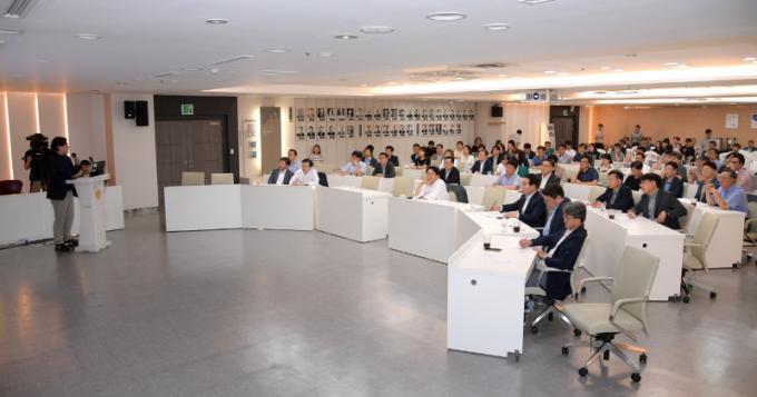 ±¤ÁÖ½ÃÀÇ ÁÖ¿ä Çö¾È°ú ±¤ÁÖ, Àü³², ÀüºÏÀÇ È£³²±Ç ¸Þ°¡½ÃƼ µîÀ» ³íÀÇÇϱâ À§ÇØ ¸¶·ÃµÈ Æ÷·³¿¡´Â °±âÁ¤ ±¤ÁÖ½ÃÀå°ú ÃÖÄ¡±¹ ±¤ÁÖ¿¬±¸¿øÀåÀ» ºñ·ÔÇÑ ±¤Áֽà °øÁ÷ÀÚ, °ø°ø±â°ü ÀÓÁ÷¿ø µî 100¿©¸íÀÌ Âü¼®Çß´Ù.