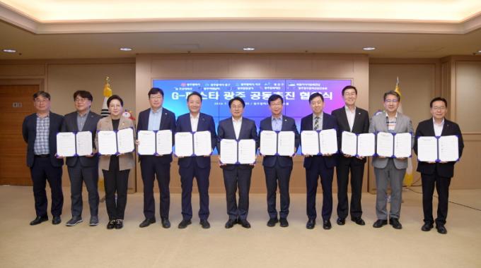±¤ÁÖ±¤¿ª½Ã(½ÃÀå °±âÁ¤)´Â 10ÀÏ ½Ãû ºñÁî´Ï½º·ë¿¡¼ ±¹¸³¾Æ½Ã¾Æ¹®ÈÀü´ç, Á¶¼±´ëÇб³, µ¿±¸¡¤¼±¸¡¤±¤»ê±¸ µî ÀÚÄ¡±¸, (Àç)±¤ÁÖºñ¿£³¯·¹, ±¤ÁÖ°ü±¤°ø»ç, ±¤ÁÖ¹®ÈÀç´Ü, ±¤ÁÖÁ¤º¸¹®È»ê¾÷ÁøÈï¿ø µî 9°³ ±â°ü°ú ¡®G-Æä½ºÅ¸ ±¤ÁÖ¡¯ °øµ¿ÃßÁøÀ» À§ÇÑ Çù¾àÀ» ü°áÇß´Ù.