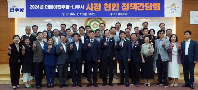 ³ªÁÖ½Ã(½ÃÀå À±º´ÅÂ)´Â 22ÀÏ ½Ãû»ç ´ëȸÀǽǿ¡¼ ´õºÒ¾î¹ÎÁÖ´ç ³ªÁÖ¡¤È¼øÁö¿ªÀ§¿øÈ¸¿Í ¡®2024³â ½ÃÁ¤ Çö¾È Á¤Ã¥°£´ãȸ¡¯¸¦ °¡Á³´Ù°í ¹àÇû´Ù.