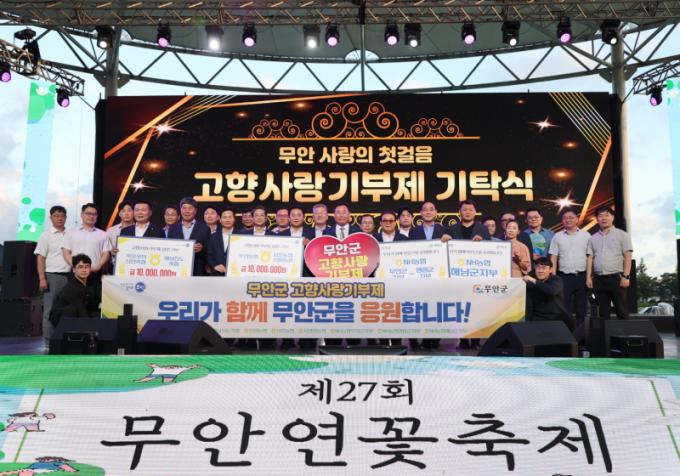 8°³ÀÇ ³óÃàÇùÀº ¿ÃÇØ ½ÃÇà 2³â Â÷¸¦ ¸ÂÀÌÇÑ ¹«¾È±º °íÇâ»ç¶û±âºÎÁ¦ÀÇ È°¼ºÈ¿Í Áö¿ª °£ Áö¼ÓÀûÀÎ »ó»ý¹ßÀüÀ» ±â¿øÇÏ¸ç ¸ñÆ÷¹«¾È½Å¾ÈÃàÇù°ú ÇØ³²ÁøµµÃàÇùÀÌ 1,000¸¸¿ø, ¹«¾È³óÇù°ú »ïÈ£³óÇù, ¼¿µ¾Ï³óÇùÀÌ °¢ 500¸¸¿ø¾¿ 1,000¸¸¿øÀ¸·Î ³óÃàÇù ÃÑ 2,000¸¸¿øÀÇ °íÇâ»ç¶û ±âʱÝÀ» ¹«¾È±ºÀ¸·Î Àü´ÞÇÏ¿´´Ù.