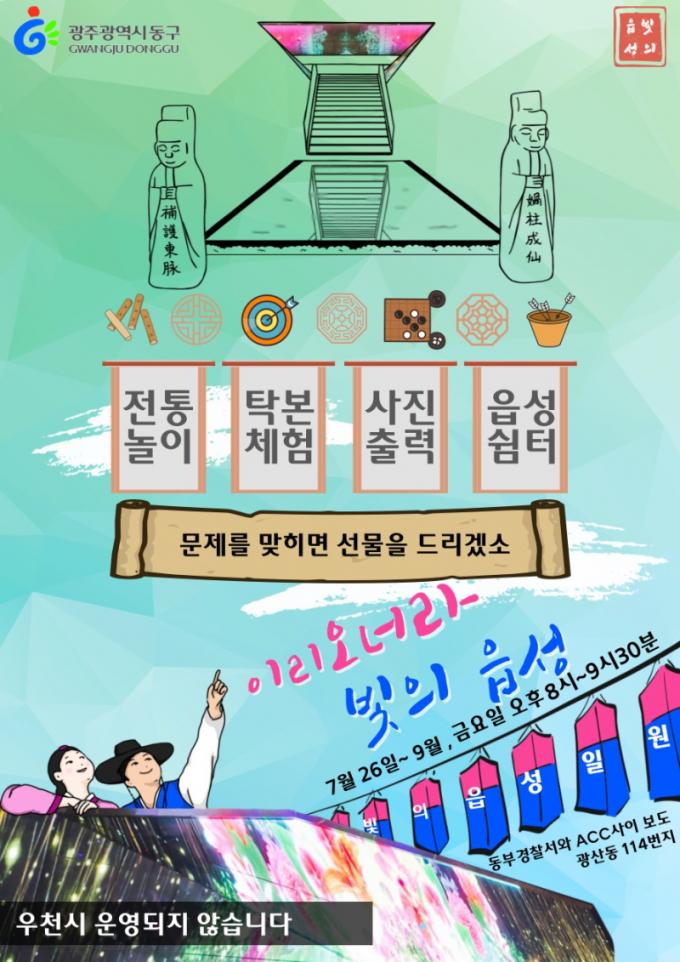 [È£³²´º½º¶óÀÎ = ¼ÀºÈ« ±âÀÚ] ±¤ÁÖ µ¿±¸(ûÀå ÀÓÅÃ)´Â Áö³´Þ °³°üÇÑ ¡®ºûÀÇ À¾¼º¡¯¿¡¼ 26ÀϺÎÅÍ ¿À´Â 9¿ù±îÁö ¸ÅÁÖ ±Ý¿äÀÏ(¿ÀÈÄ 8½Ã~9½Ã 30ºÐ¡¤¿ìõ ½Ã ¹Ì¿î¿µ)¸¶´Ù ¡®À̸® ¿À³Ê¶ó, ºûÀÇ À¾¼º¡¯ Çà»ç¸¦ ¿¬´Ù°í ¹àÇû´Ù.