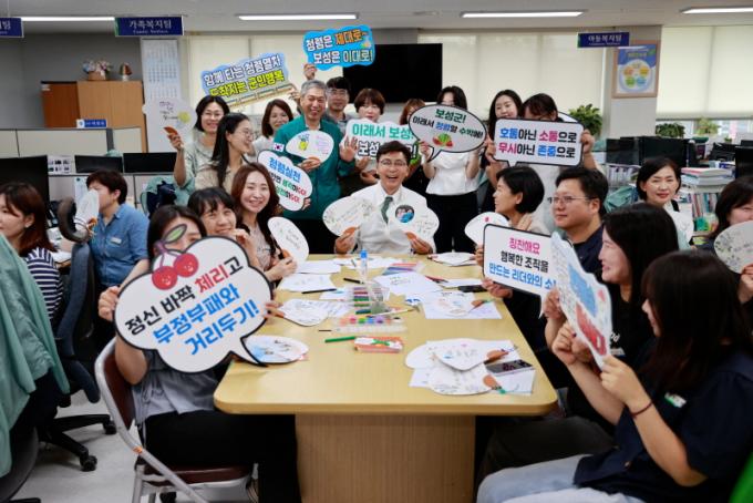 ¡®³ªÀÇ Ã»·ÅºÎä ¸¸µé±â¡¯´Â û·ÅÀÇ ¹Ù¶÷ÀÌ ºÎÁ¤ºÎÆÐ¿Í ¹«´õÀ§¸¦ ½Ã¿øÇÏ°Ô ³¯·Á¹ö¸®±â¸¦ ¹Ù¶ó´Â ¸¶À½À» ´ã¾Æ ±âȹµÆÀ¸¸ç, °»ç 2ÀÎ 1Á¶·Î ±¸¼ºµÈ 3ÆÀÀÌ °¢ ºÎ¼ ¹× À¾¸é ÇàÁ¤º¹Áö¼¾ÅÍ(¸é»ç¹«¼Ò)¸¦ ã¾Æ ÁøÇàµÆ´Ù.