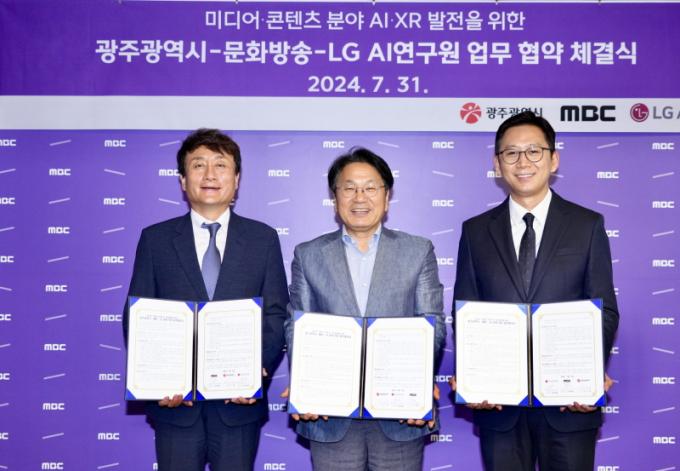 [È£³²´º½º¶óÀÎ = ¼ÀºÈ« ±âÀÚ] ±¤Áֽð¡ MBC, LG AI¿¬±¸¿ø°ú ¼ÕÀâ°í ¹Ìµð¾î¡¤ÄÜÅÙÃ÷ºÐ¾ß ÀΰøÁö´É(AI)¡¤È®ÀåÇö½Ç(XR) ¹ßÀüÀ» À§ÇØ ÀΰøÁö´É(AI) ¸ðµ¨ °³¹ß ¹× µ¥ÀÌÅÍ Çù·Â¿¡ ³ª¼±´Ù.