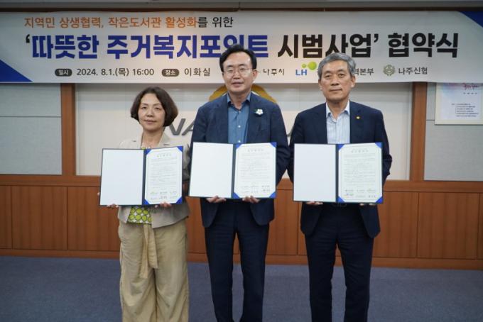 À̹ø Çù¾à½Ä¿¡´Â À±º´Å ³ªÁÖ½ÃÀå, Á¤¼ö¹Ì LH±¤ÁÖÀü³²Áö¿ªº»ºÎÀå, ÃÖ±æÁÖ ³ªÁÖ½ÅÇù ÀÌ»çÀå µîÀÌ Âü¼®Çß´Ù. Çù¾à ³»¿ëÀº ¡®ÁöÇý¸¶·ç ÀÛÀºµµ¼°ü¡¯ Ȱ¼ºÈ »óÈ£ Çù·Â°ú Áְź¹ÁöÆ÷ÀÎÆ® Àç¿ø ¸¶·Ã µîÀ» ´ã°í ÀÖ´Ù.