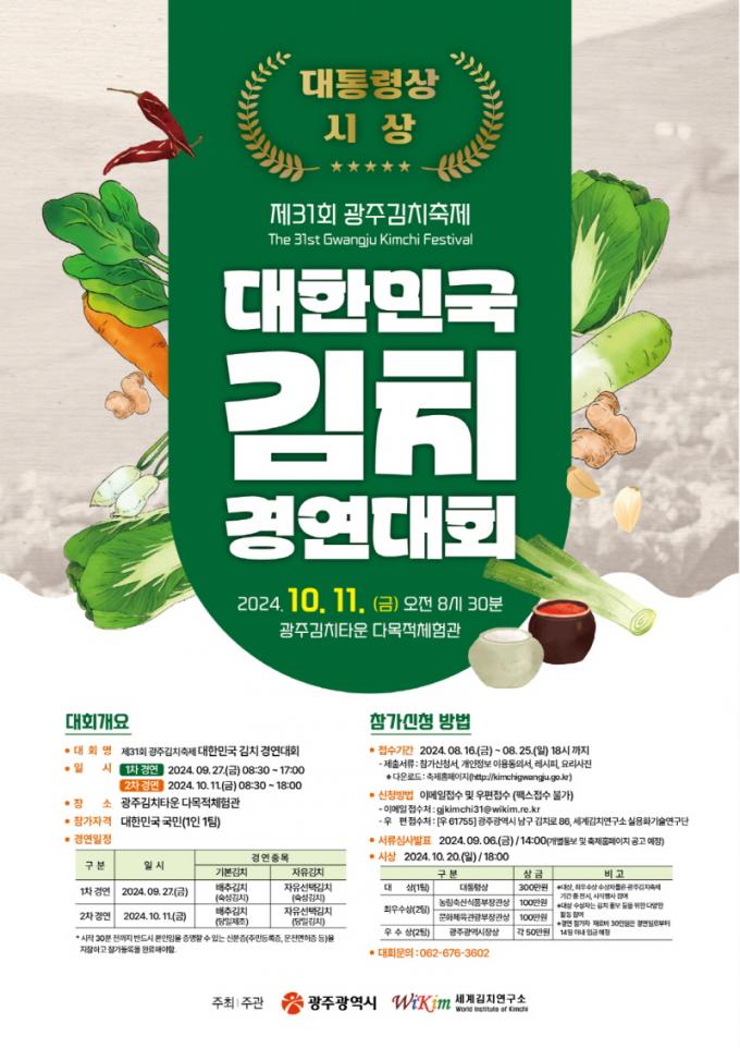 [È£³²´º½º¶óÀÎ = ¼ÀºÈ« ±âÀÚ] ±¤ÁÖ±¤¿ª½Ã(½ÃÀå °±âÁ¤)´Â ¡®2024 ´ëÇѹα¹ ±èÄ¡ °æ¿¬´ëȸ¡¯ Âü°¡ÀÚ¸¦ ¿À´Â 16ÀϺÎÅÍ 25ÀϱîÁö ¸ðÁýÇÑ´Ù.