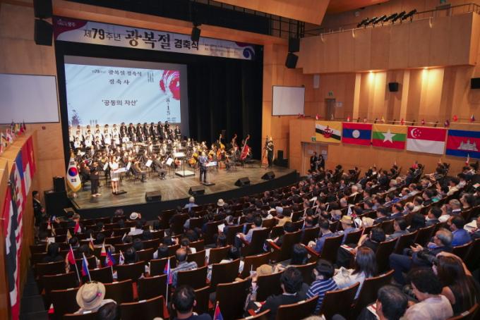 [È£³²´º½º¶óÀÎ = ¼ÀºÈ« ±âÀÚ] ±Ø½ÉÇÑ °¥µî°ú ¹Ý¸ñÀÌ µå·¯³ Á¤ºÎÀÇ ±¤º¹Àý ±â³ä½Ä°ú´Â ´ëÁ¶ÀûÀ¸·Î ±¤ÁÖ±¤¿ª½ÃÀÇ ¡®Á¦79Áֳ⠱¤º¹Àý °æÃà½Ä¡¯Àº ±¤º¹È¸ ¹× º¸ÈÆ´Üü´Â ¹°·Ð ¾Æ¼¼¾È ¿Ü±¹ÀÎ, ´Ù¹®È°¡Á·, Áö¿ª¹®È¿¹¼úÀÎ µîÀÌ Çѵ¥ ¾î¿ì·¯Áø ÈÇÕÀÇ ÀåÀ¸·Î Ä¡·¯Áö¸é¼ Ưº°ÇÑ ±¤º¹Àý °æÃà½ÄÀ¸·Î ±â¾ïÇÏ°Ô µÆ´Ù.