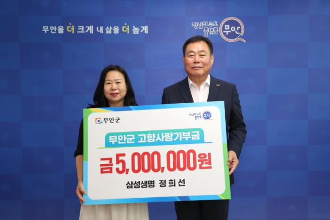 [È£³²´º½º¶óÀÎ = ¼ÀºÈ« ±âÀÚ] ¹«¾È±º(±º¼ö ±è»ê)Àº »ï¼º»ý¸í Á¤Èñ¼± ¼³°è»ç°¡ À۳⿡ ÀÌ¾î ¿ÃÇØµµ ¹«¾È±º¿¡ °íÇâ»ç¶û±âºÎ±Ý 500¸¸¿øÀ» ±âŹÇϰí Áö¿ª ¹ßÀü¿¡ µû¶æÇÑ ÀÀ¿øÀ» º¸³Â´Ù°í 21ÀÏ ¹àÇû´Ù.