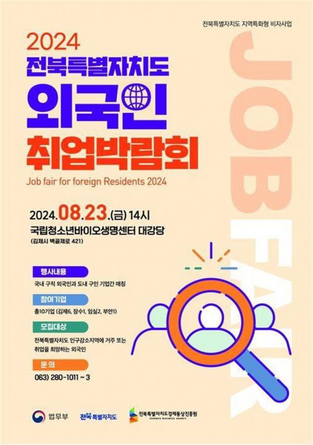 [È£³²´º½º¶óÀÎ = ¼ÀºÈ« ±âÀÚ] ÀüºÏƯº°ÀÚÄ¡µµ´Â ¿À´Â 23ÀÏ ±¹¸³Ã»¼Ò³â¹ÙÀÌ¿À»ý¸í¼¾ÅÍ¿¡¼ '2024 ¿Ü±¹ÀÎ Ãë¾÷ ¹Ú¶÷ȸ'¸¦ °³ÃÖÇϸç, À̸¦ ÅëÇØ Áö¿ªÆ¯ÈÇü ºñÀÚ»ç¾÷ÀÇ È°¼ºÈ¸¦ º»°ÝÀûÀ¸·Î ÃßÁøÇÑ´Ù.