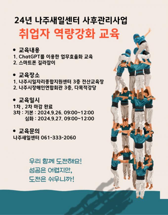 [È£³²´º½º¶óÀÎ = ¼ÀºÈ« ±âÀÚ] ³ªÁÖ½Ã(½ÃÀå À±º´ÅÂ)´Â ³ªÁÖ»õÀϼ¾ÅÍ(¼¾ÅÍÀå ÃÖÁø¾Æ)¿¡¼ ±¸Á÷ÀÚ¿Í ÀçÁ÷ÀÚµéÀÇ °æÀï·Â °È¸¦ À§ÇÑ ¡®ChatGPT¸¦ ÀÌ¿ëÇÑ ¾÷¹« È¿À²È ±³À°¡¯°ú ¡®´©±¸³ª ½±°Ô ¹è¿ì´Â ½º¸¶Æ®Æù ±æ¶óÀâÀÌ ±³À°¡¯À» »õ·Ó°Ô ÁøÇàÇÑ´Ù°í 23ÀÏ ¹àÇû´Ù.