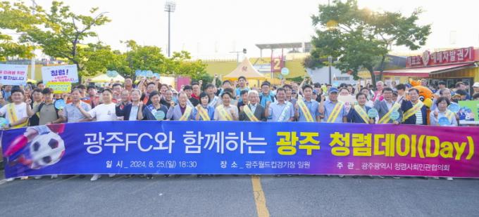 [È£³²´º½º¶óÀÎ = ¼ÀºÈ« ±âÀÚ] ±¤ÁÖ±¤¿ª½Ã(½ÃÀå °±âÁ¤)´Â Áö¿ª»çȸ û·Å¹®È È®»êÀ» À§ÇØ ¡®±¤ÁÖFC¿Í ÇÔ²²ÇÏ´Â ±¤ÁÖ Ã»·Åµ¥ÀÌ(Day)¡¯ Ä·ÆäÀÎÀ» Áö³ 25ÀÏ ±¤ÁÖÃ౸Àü¿ë±¸Àå ÀÏ¿ø¿¡¼ ÁøÇàÇß´Ù.