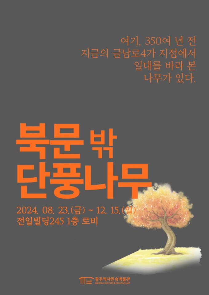 À̹ø Àü½Ã´Â ±Ý³²·Î4°¡¿¡¼ 350³â ³Ñ°Ô »ì¾Ò´ø ´Üdz³ª¹«ÀÇ Á¶¼±½Ã´ë ±¤ÁÖÀ¾¼º ºÏ¹® ¹Û dz°æ¿¡ °üÇÑ À̾߱â·Î ²Ù¸çÁ³´Ù. Àü½ÃȸÀÇ ½Ã°£Àû ¹è°æÀº 17¼¼±â ÃʺÎÅÍ 20¼¼±â ÃʱîÁöÀ̸ç, °ø°£Àû ¹è°æÀº Á¶¼±½Ã´ë ±¤ÁÖÀ¾¼º°ú ºÏ¹® ¹Û ÀÏ´ë·Î Áö±ÝÀÇ ±Ý³²·Î 1°¡~5°¡ÀÌ´Ù.