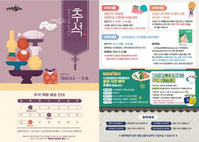 [È£³²´º½º¶óÀÎ = ¼ÀºÈ« ±âÀÚ] ³ªÁÖ½Ã(½ÃÀå À±º´ÅÂ)´Â ¿À´Â 9¿ù 2ÀϺÎÅÍ 9¿ù 16ÀϱîÁö ³ªÁÖ·ÎÄÃǪµåÁ÷¸ÅÀå ºû°¡¶÷Á¡¿¡¼ 70¿© Á¾ÀÇ ´Ù¾çÇÑ Ãß¼® ¸ÂÀÌ ¼±¹°¼¼Æ®¸¦ ÆÇ¸ÅÇÑ´Ù°í 30ÀÏ ¹àÇû´Ù.