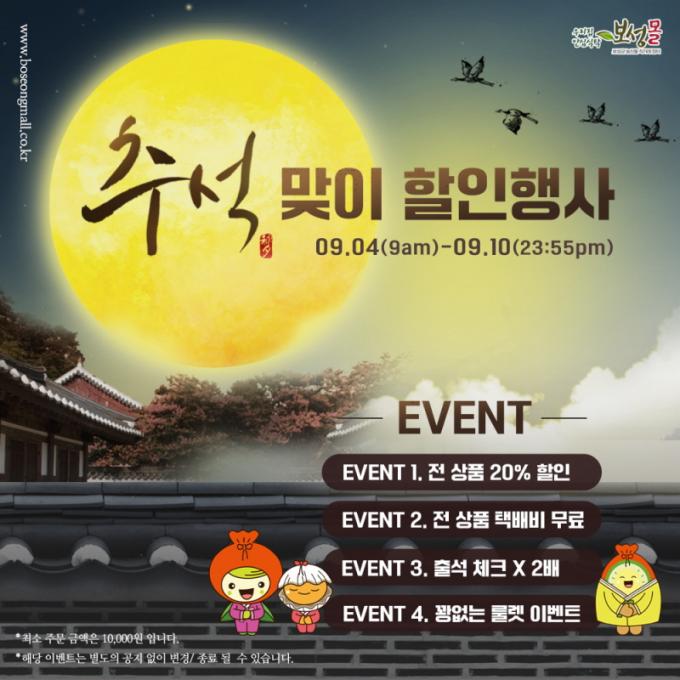 [È£³²´º½º¶óÀÎ = ¼ÀºÈ« ±âÀÚ] º¸¼º±ºÀº ¿ì¸® °íÀ¯ÀÇ ¸íÀý Ãß¼®À» ¸Â¾Æ ¿À´Â 4ÀϺÎÅÍ 10ÀϱîÁö 7Àϰ£ ³óƯ»ê¹° ¿Â¶óÀÎ ¼îÇθô ¡®º¸¼º¸ô¡¯¿¡¼ Ưº° ÇÒÀÎÇà»ç¸¦ ÁøÇàÇÑ´Ù°í ¹àÇû´Ù.