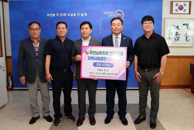 ±âŹ½Ä¿¡´Â ¹«¾È³²ºÎÁöºÎ ȸ¿ø 25¿© ¸íÀÌ Âü¿©ÇÏ¿© µû¶æÇÑ Ãß¼® ¸íÀýÀ» º¸³¾ ¼ö ÀÖµµ·Ï µÅÁö°í±â 300¹Ú½º(¹Ú½º´ç 2kg)¸¦ ¹«¾È±º¿¡ Àü´ÞÇß´Ù.
