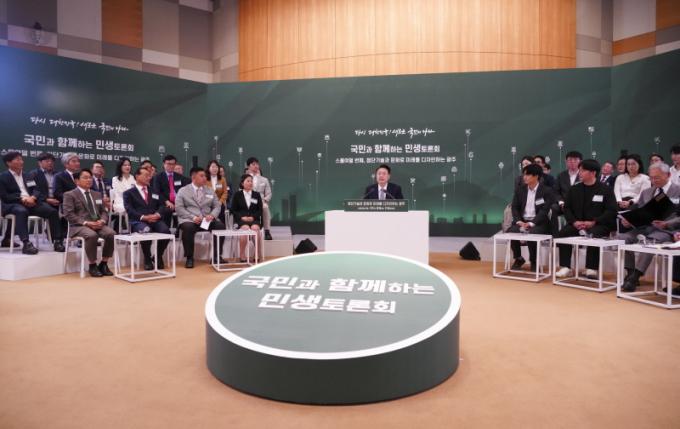 ÇÑÆí Á¤ºÎ´Â À̳¯ 28¹øÂ° ¡®±¹¹Î°ú ÇÔ²²ÇÏ´Â ¹Î»ýÅä·Ðȸ¡¯¸¦ ±¤ÁÖ¿¡¼ °³ÃÖÇß´Ù. À± ´ëÅë·ÉÀº ¡®Ã·´Ü±â¼ú°ú ¹®È·Î ¹Ì·¡¸¦ µðÀÚÀÎÇÏ´Â ±¤ÁÖ¡¯¸¦ ÁÖÁ¦·Î ±¤Áֽùεé°ú ÀΰøÁö´É»ê¾÷, ¹Ì·¡Â÷»ê¾÷, ¹®ÈÁ߽ɵµ½Ã À°¼º µî ÁÖ¿ä Çö¾È¿¡ ´ëÇØ Åä·ÐÇß´Ù.