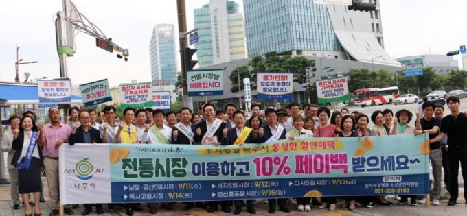 ÇÑÆí, À±º´Å ³ªÁÖ½ÃÀåÀº Áö³ 3ÀÏ ºû°¡¶÷µ¿ ÇÑÀüKDN»ç°Å¸®¿¡¼ °ø°ø±â°ü, »óÀÎȸ, ¼ÒºñÀÚ´Üü, °ø¹«¿ø µî°ú ÇÔ²²ÇÑ ¡®Áö¿ª»óǰ ÆÇ¸Å ÃËÁø Ä·ÆäÀΡ¯À» °¡Á³´Ù.¶Ç À̹ø ÁÖ Áö¿ª ÀüÅë½ÃÀåÀ» ¼øÈ¸ÇÏ¸ç ³ªÁÖ»ç¶ûÄ«µå ¼Òºñ ÇýÅÃÀ» Àû±Ø È«º¸Çϰí ÀÖ´Ù.