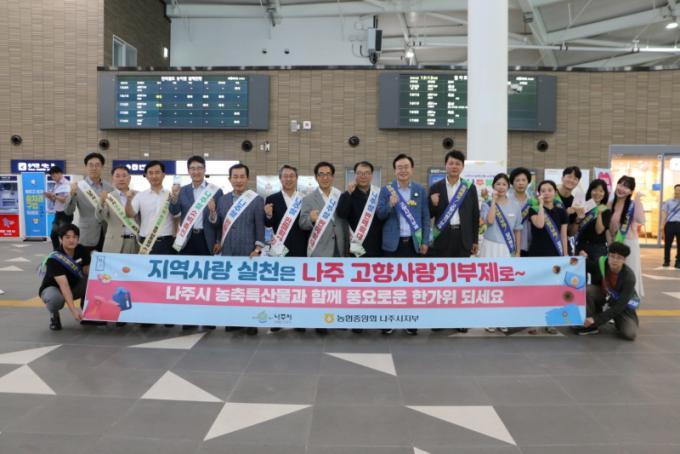 [È£³²´º½º¶óÀÎ = ¼ÀºÈ« ±âÀÚ] ³ªÁÖ½Ã(½ÃÀå À±º´ÅÂ)´Â 13ÀÏ ³ªÁÖ¿ª ´ëÇսǿ¡¼ Ãß¼®À» ¸Â¾Æ °íÇâÀ» ã´Â ±Í¼º°´°ú ½Ã¹ÎÀ» ´ë»óÀ¸·Î °íÇâ»ç¶û±âºÎÁ¦¸¦ È«º¸Çϰí Áö¿ª ³ó¡¤Ãà Æ¯»ê¹°À» ¼Ò°³Çϴ ȯ¿µ Ä·ÆäÀÎÀ» ÁøÇàÇß´Ù°í ¹àÇû´Ù.