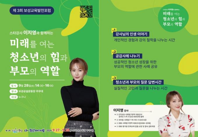 [È£³²´º½º¶óÀÎ = ¼ÀºÈ« ±âÀÚ] º¸¼º±ºÀº ¿À´Â 28ÀÏ ¿ÀÈÄ 2½Ã 30ºÐ °ø¼³¿îµ¿Àå ÁÖ¹«´ë¿¡¼ »çȸޱ¸¿µ¿ª ½ºÅ¸°»çÀÎ ÀÌÁö¿µ ¾¾¸¦ ÃÊÃ»ÇØ ¡®Á¦3ȸ º¸¼º±³À°¹ßÀüÆ÷·³¡¯À» °³ÃÖÇÑ´Ù°í ¹àÇû´Ù.