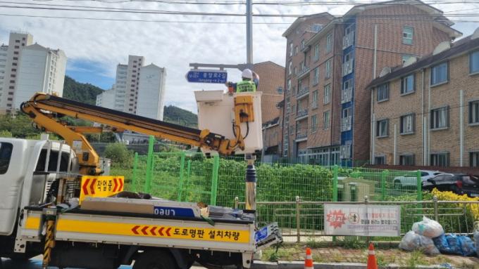 °ü³» ¼³Ä¡µÈ µµ·Î¸íÆÇÀº ÃÑ 3,681°³·Î ÀÌ Áß ÈѼյǰųª ¸Á½ÇµÈ µµ·Î¸íÆÇ 134°³¸¦ ±³Ã¼Çß´Ù. ¿µ±¤±ºÀº ¸Å³â ½Ç½ÃÇÏ´Â ÁÖ¼ÒÁ¤º¸½Ã¼³ ÀÏÁ¦Á¶»ç¸¦ ÅëÇØ ½Ã¼³¹°ÀÇ »óŸ¦ È®ÀÎÇϰí ÈѼա¤¸Á½ÇµÈ ½Ã¼³¹°¿¡ ´ëÇØ À¯Áöº¸¼ö¸¦ ½ÃÇàÇØ ½ÃÀμºÀÌ ¶³¾îÁö´Â ½Ã¼³¹°À» Á¤ºñÇÏ°í ³«Çϵ µû¸¥ ¾ÈÀü»ç°í¸¦ »çÀü¿¡ ¿¹¹æÇϰí ÀÖ´Ù.