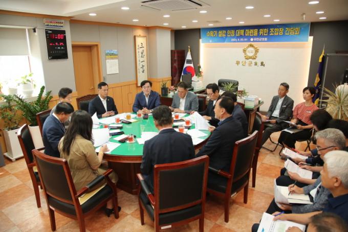 [È£³²´º½º¶óÀÎ = ¼ÀºÈ« ±âÀÚ] ¹«¾È±ºÀÇȸ(ÀÇÀå ÀÌÈ£¼º)´Â 27ÀÏ ±ºÀÇȸ ÀÇÀå½Ç¿¡¼ ±èÇØÁ¾ ³óÇù¹«¾È±ºÁöºÎÀåÀ» ºñ·ÔÇÑ 6°³ ³óÇù Á¶ÇÕÀåµé°ú ÇÔ²² ½Ò°ª ¾ÈÁ¤È °ü·Ã °£´ãȸ¸¦ ÁøÇàÇß´Ù. À̹ø °£´ãȸ´Â ÃÖ±Ù ½Ò°ª Ç϶ôÀ¸·Î ¾î·Á¿òÀ» °Þ°í ÀÖ´Â ³ó¹ÎµéÀÇ ¸ñ¼Ò¸®¸¦ µè°í, ¼öÈ®±â ½Ò°ª ¾ÈÁ¤À» À§ÇÑ ½ÇÁúÀûÀÎ Áö¿ø ´ëÃ¥À» ³íÀÇÇϱâ À§ÇØ ¿·È´Ù.