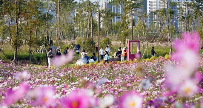 ¿µ»ê° Á¤¿ø°ú ´õºÒ¾î µÐġüÀ°°ø¿ø, µé¼¶¿¡ Á¶¼ºÇÑ 4¸¸5õÆò(15¸¸§³) ´ë±Ô¸ð ÄÚ½º¸ð½º, ¸Þ¹Ð²É¹ç ¶ÇÇÑ ¿¬ÀÏ °ü±¤°´µé·Î ºÏÀû¿´´Ù. ¸¸°³ÇÑ ÄÚ½º¸ð½º´Â ³·¿¡´Â ¹Ý¦ÀÌ´Â ¿µ»ê°, ¹ã¿¡´Â ²É±æ »çÀ̸¦ ºñÃß´Â ¾ß°£Á¶¸í°ú ÇÔ²² ¾î¿ì·¯Á® ȯ»óÀûÀÎ °¡À» Á¤Ã븦 ¼±»çÇß´Ù.