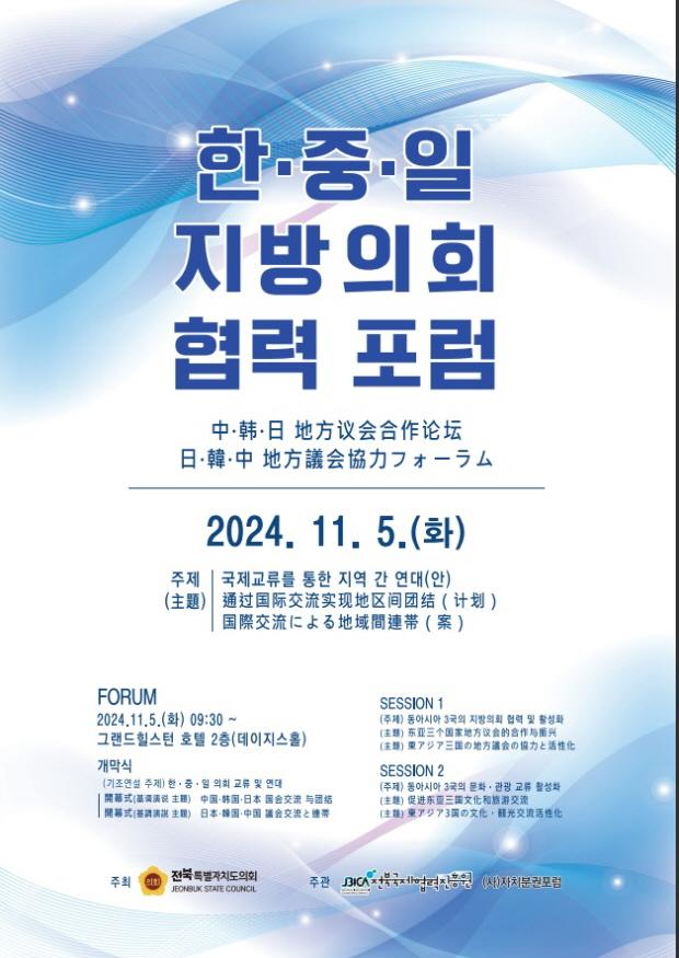 [È£³²´º½º¶óÀÎ = ¼ÀºÈ« ±âÀÚ] ÀüºÏƯº°ÀÚÄ¡µµÀÇȸ°¡ ÁÖÃÖÇϰí ÀüºÏ±¹Á¦Çù·ÂÁøÈï¿øÀÌ ÁÖ°üÇÏ´Â ¡®ÇÑ¡¤Áß¡¤ÀÏ Áö¹æÀÇȸ Çù·Â Æ÷·³¡¯ÀÌ ¿À´Â 11¿ù 5ÀÏ ÀüÁÖ ±×·£µåÈú½ºÅÏ È£ÅÚ¿¡¼ °³ÃֵȴÙ.