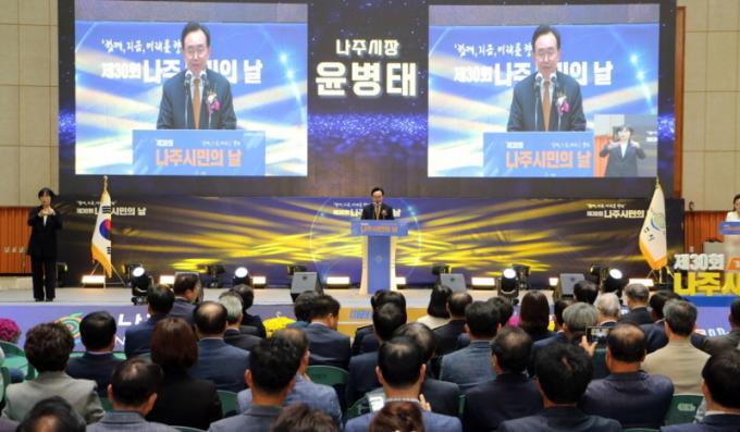 [È£³²´º½º¶óÀÎ = ¼ÀºÈ« ±âÀÚ] ³ªÁÖ½Ã(½ÃÀå À±º´ÅÂ)´Â 30ÀÏ ¿ÀÈÄ 2½Ã ³ªÁÖÁ¾ÇÕ½ºÆ÷Ã÷ÆÄÅ© ´Ù¸ñÀûüÀ°°ü¼ ¡®Á¦30ȸ ³ªÁֽùÎÀÇ ³¯¡¯ ±â³ä½ÄÀ» °³ÃÖÇß´Ù.