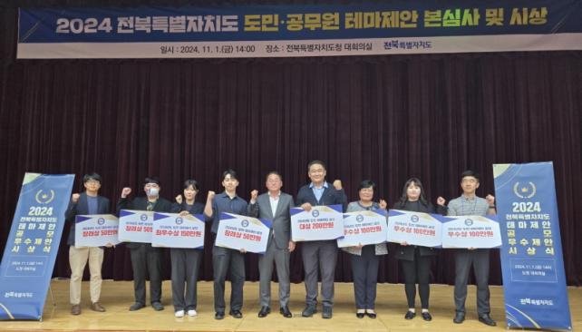 [È£³²´º½º¶óÀÎ = ¼­ÀºÈ« ±âÀÚ] ÀüºÏƯº°ÀÚÄ¡µµ´Â µµ¹Î°ú °ø¹«¿øÀÇ Âü½ÅÇÑ ¾ÆÀ̵ð¾î¸¦ µµÁ¤¿¡ ¹Ý¿µÇϱâ À§ÇØ ½Ç½ÃÇÑ ¡®2024³â µµ¹Î‧°ø¹«¿ø Å׸¶Á¦¾È °ø¸ð¡¯¿¡¼­ ÃÖÁ¾ 10°ÇÀÇ ¿ì¼ö Á¦¾ÈÀ» ¼±Á¤ÇØ ½Ã»óÇß´Ù°í ¹àÇû´Ù.
