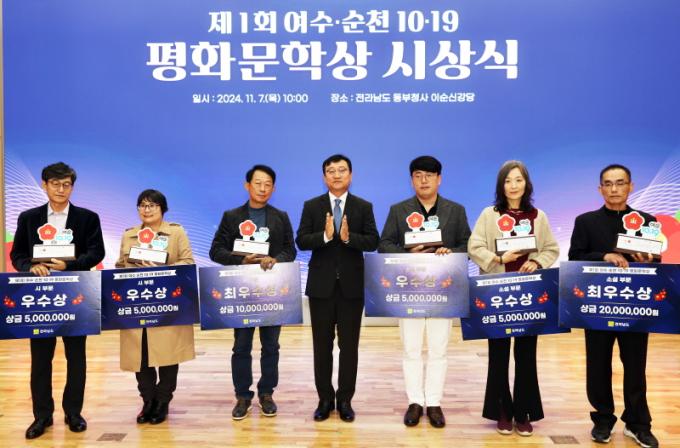 [È£³²´º½º¶óÀÎ = ¼ÀºÈ« ±âÀÚ] Àü¶ó³²µµ´Â ¿©¼øÀÇ ¾ÆÇÄÀ» ³Ñ¾î ÆòÈ¿Í Èñ¸ÁÀ» »ó¡ÇÏ´Â ÃÖ°íÀÇ ¹®ÇÐ»ó µµ¾àÀ» ¸ñÇ¥·Î ¿©¼ö¡¤¼øÃµ 10¡¤19Æòȹ®ÇлóÀ» Á¦Á¤, 7ÀÏ µ¿ºÎû»ç¿¡¼ ¿¸° ù ½Ã»ó½Ä¿¡¼ ¼Ò¼³ ºÎ¹® À̰æÈ£ ¾¾ µî 6¸íÀÇ ¼ö»óÀÚ¸¦ ¹èÃâÇß´Ù.