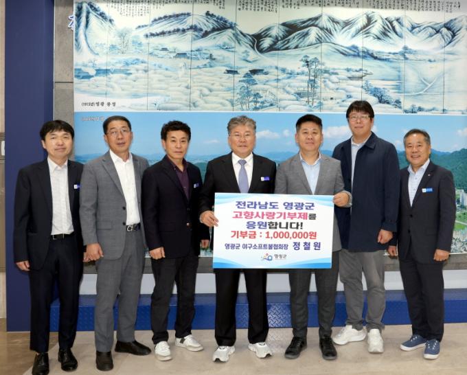 [È£³²´º½º¶óÀÎ = ¼ÀºÈ« ±âÀÚ] ¿µ±¤±º ¾ß±¸¼ÒÇÁÆ®º¼Çùȸ(ȸÀå Á¤Ã¶¿ø)°¡ Áö³ 15ÀÏ ±º¼ö½ÇÀ» ¹æ¹®ÇÏ¿© °íÇâÀ» »ç¶ûÇÏ´Â ¸¶À½À» ´ã¾Æ ÃÑ 100¸¸ ¿øÀ» ±âºÎÇß´Ù.