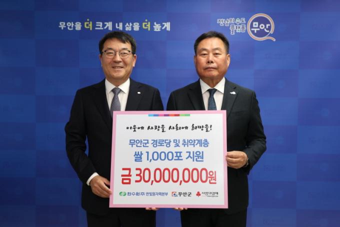 ÃÖÇå±Ô ÇѺû¿øÀڷº»ºÎÀåÀº ¡°¹«¾È±º°ú ÇÔ²² ÇùÀÇÇÏ¿© ±âºÎÇÑ ½ÒÀÌ ¹«¾È±º ³» µî·Ï °æ·Î´ç°ú Ãë¾à°èÃþ¿¡ Àß Àü´ÞµÇ±æ ¹Ù¶õ´Ù¡±¸ç ¡°Áö¿ªÀ» ´ëÇ¥ÇÏ´Â ±â¾÷À¸·Î¼ Áö¿ª»çȸ °øÀÍ ÁõÁøÀ» À§ÇØ ¾ÕÀ¸·Îµµ ÃÖ¼±À» ´ÙÇϰڴ١±°í ¼Ò°¨À» ÀüÇß´Ù.