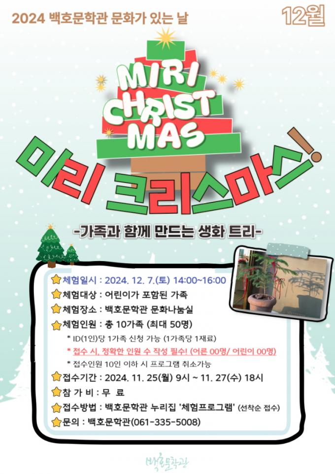 [È£³²´º½º¶óÀÎ = ¼ÀºÈ« ±âÀÚ] ³ªÁÖ½Ã(½ÃÀå À±º´ÅÂ)´Â ´Ù°¡¿À´Â Å©¸®½º¸¶½º¿Í 12¿ù ¡®¹®È°¡ ÀÖ´Â ³¯¡¯À» ±â³äÇÏ¿© Ưº°ÇÑ Ã¼ÇèÇÁ·Î±×·¥À» ¿î¿µÇÑ´Ù°í 26ÀÏ ¹àÇû´Ù.