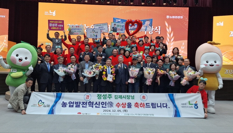 [È£³²´º½º¶óÀÎ = ¼ÀºÈ« ±âÀÚ] Á¤¼ºÁÖ ±èÁ¦½ÃÀåÀÌ 5ÀÏ ³óÇùÁß¾Óȸ°¡ ÁÖ°üÇÏ´Â ¡®³ó¾÷¹ßÀüÇõ½ÅÀλó¡¯À» ¼ö»óÇß´Ù.