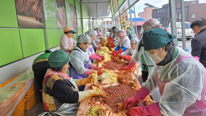 À̳¯ Çà»ç¿¡´Â ÀÏ·ÎÀ¾ »õ¸¶À»ºÎ³àȸ¿ø 50¿© ¸íÀÌ Ãß¿î ³¯¾¾¿¡µµ ÇÔ²² ¸ð¿© ÃÑ 800Æ÷±âÀÇ ±èÀå±èÄ¡¸¦ ´ã°¬°í, °ü³» ºÒ¿ìÀÌ¿ô°ú µ¶°Å³ëÀο¡°Ô Á÷Á¢ Àü´ÞÇÏ¸ç ¾ÈºÎ¸¦ »ìÆñ´Ù.