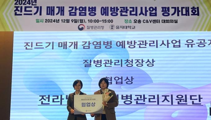 [È£³²´º½º¶óÀÎ = ¼ÀºÈ« ±âÀÚ] Àü¶ó³²µµ´Â 9ÀÏ ÃæºÏ ¿À¼Û¿¡¼ ¿¸° Áúº´°ü¸®Ã»ÀÇ ¡®2024³â Áøµå±â ¸Å°³ °¨¿°º´ ¿¹¹æ°ü¸®»ç¾÷ Æò°¡´ëȸ¡¯¿¡¼ Àü±¹ ¿ì¼ö±â°üÀ¸·Î ¼±Á¤µÅ Áúº´°ü¸®Ã»Àå ±â°üǥâÀ» ¹Þ¾Ò´Ù.