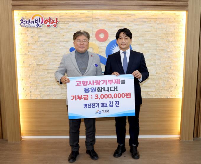 [È£³²´º½º¶óÀÎ = ¼ÀºÈ« ±âÀÚ] ÁÖ½Äȸ»ç ¸íÁøÀü±â ±èÁø ´ëÇ¥°¡ Áö³ 10ÀÏ ¿µ±¤±ºÀ» ¹æ¹®ÇÏ¿© 3¹é¸¸¿øÀÇ °íÇâ»ç¶û±âºÎ·Î ¿ÂÁ¤ÀÇ ¸¶À½À» ÀüÇß´Ù.