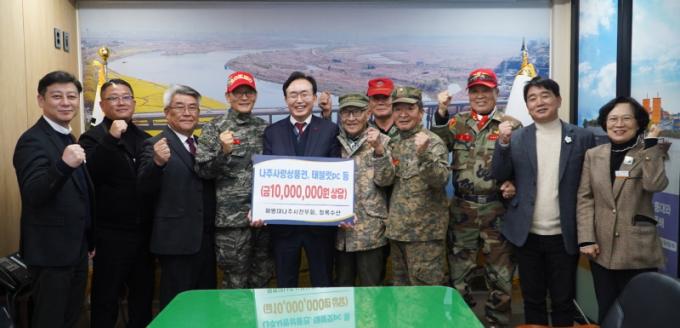 À̳¯ ³ªÁÖ½ÃÇØº´´ëÀü¿ìȸ¿Í û·Ï¼ö»êÀº ³ªÁÖ»ç¶û»óǰ±Ç 770¸¸¿ø°ú ÅÂºí¸´PC 3´ë, Àüº¹ ¼¼Æ® 21¹Ú½º µî ÃÑ 1õ¸¸¿ø »ó´çÀÇ ¹°Ç°À» ±âŹÇß´Ù. ±âŹ½Ä¿¡´Â À±º´Å ³ªÁÖ½ÃÀå, ÃÖ¹®È¯‧ÃÖÁ¤±â ÀÇ¿øÀ» ºñ·ÔÇØ ³ªÁÖ½ÃÇØº´´ëÀü¿ìȸ¿Í û·Ï¼ö»ê °ü°èÀÚ µî 15¸íÀÌ Âü¼®Çß´Ù.