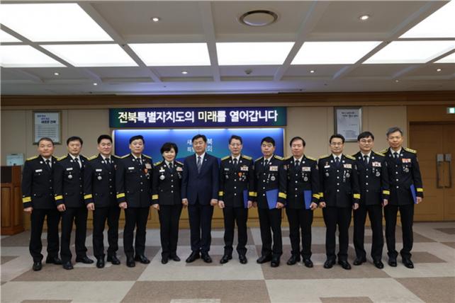 [È£³²´º½º¶óÀÎ = ¼ÀºÈ« ±âÀÚ] ÀüºÏƯº°ÀÚÄ¡µµ´Â 2025³â »õÇØ¸¦ ¸Â¾Æ µµ¹ÎÀÇ ¾ÈÀü °È¸¦ À§ÇÑ °ÇÑ ÀÇÁö¸¦ ´ã¾Æ 2ÀÏ ¿ÀÀü 9½Ã 30ºÐ, µµÃ» 4Ãþ Áö»ç½Ç¿¡¼ ¼Ò¹æ°ø¹«¿ø ¼Ò¹æ¼Àå±Þ ½ÂÁøÀÚ¿Í Àüº¸ÀÚ¿¡ ´ëÇÑ ÀÓ¸íÀå ¼ö¿©½ÄÀ» °³ÃÖÇß´Ù.