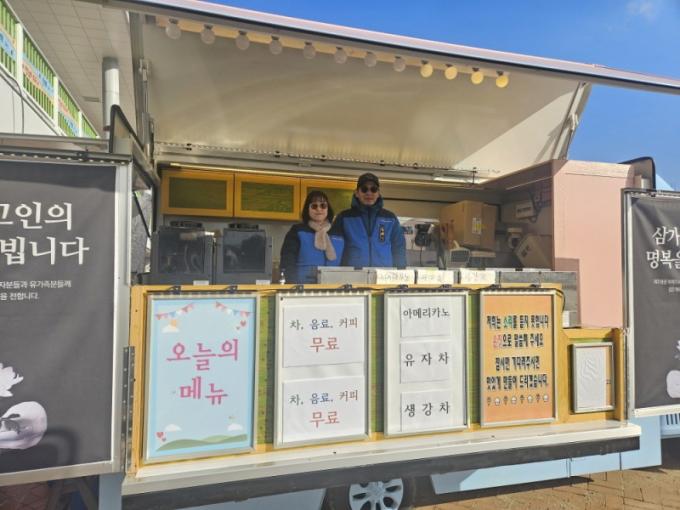 ÀÌ °¡¿îµ¥ ¸ñÆ÷½Ã¿¡ °ÅÁÖÇÏ´Â ÇÑ Ã»°¢Àå¾ÖÀÎ ºÎºÎ´Â »ç°í ´çÀϺÎÅÍ ¸ÅÀϰ°ÀÌ Ä¿ÇÇ¡¤À¯ÀÚÂ÷¡¤»ý°Â÷ 300ÀκÐÀ» ÁغñÇØ ¹«¾È°øÇ× ÇöÀå¿¡¼ ¹«·á ³ª´®ºÀ»ç¸¦ Çϰí ÀÖ´Ù. À̵éÀº ¸Þ´ºÆÇ ¿·¿¡ ¡®ÀúÈñ´Â ¼Ò¸®¸¦ µèÁö ¸øÇÕ´Ï´Ù. ¼ÕÁþÀ¸·Î ¸»¾¸ÇØ ÁÖ¼¼¿ä¡¯¶ó°í ÁÖ¹® ¿ä·ÉÀ» Àû¾î ³õ¾Æ °¡½¿ÀÌ ¹¶Å¬ÇØÁö°Ô Çϰí ÀÖ´Ù.