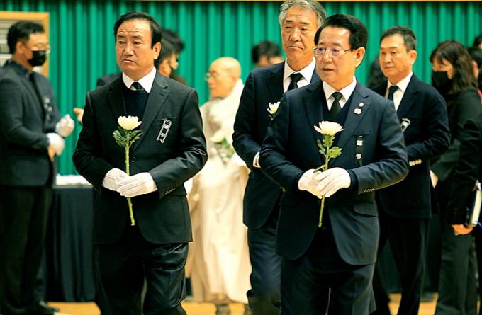 ±¤ÁÖÀü³²½Ãµµ¹Îȸ Á¦37´ë °À±¼º ȸÀå, Á¦38´ë ¾ç±¤¿ë ȸÀå, ÀÌÈ£ ¼ö¼®ºÎȸÀå, ±èÀº°æ ¼ö¼®ºÎȸÀå, ¹ÚÁ¾ÀÏ À±¸®À§¿øÀå µîÀº Áö³ 1ÀÏ ¹«¾È½ºÆ÷Ã÷ÆÄÅ©¿¡ ¸¶·ÃµÈ ÇÕµ¿ºÐÇâ¼Ò¸¦ ã¾Æ ±è¿µ·Ï Àü³²µµÁö»ç¿Í ÇÔ²² Á¦ÁÖÇ×°ø ¿©°´±â »ç°í Èñ»ýÀÚµéÀ» ¾ÖµµÇß´Ù.