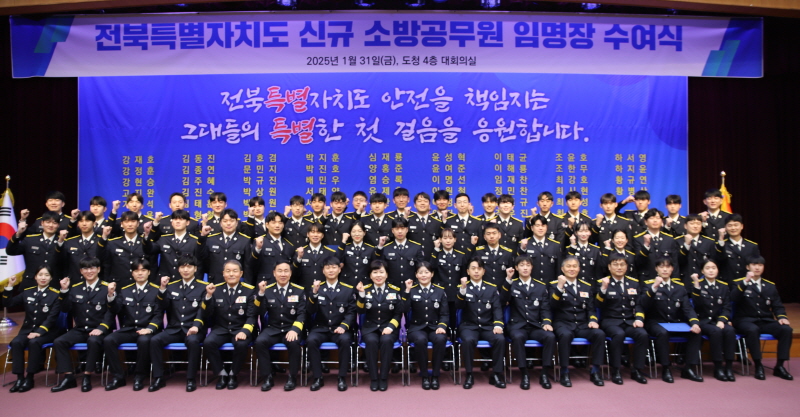 [È£³²´º½º¶óÀÎ = ¼ÀºÈ« ±âÀÚ] ÀüºÏƯº°ÀÚÄ¡µµ¼Ò¹æº»ºÎ(º»ºÎÀå ÀÌ¿À¼÷)´Â 31ÀÏ ÀüºÏµµÃ» 4Ãþ ´ëȸÀǽǿ¡¼ ¡®2025³â ½ÅÀÓ ¼Ò¹æ°ø¹«¿ø ÀÓ¿ë½Ä¡¯À» °³ÃÖÇß´Ù. À̹ø ÀÓ¿ë½Ä¿¡¼´Â 6°³¿ù°£ÀÇ Àü¹® ±³À°°úÁ¤À» ¼º½ÇÈ÷ ¸¶Ä£ 52¸íÀÇ ½ÅÀÓ ¼Ò¹æ°ø¹«¿øÀÌ ÀÓ¸íÀåÀ» ¹Þ°í »õ·Î¿î ¼Ò¹æ°üÀ¸·Î¼ÀÇ Ã¹°ÉÀ½À» ³»µðµ±´Ù.