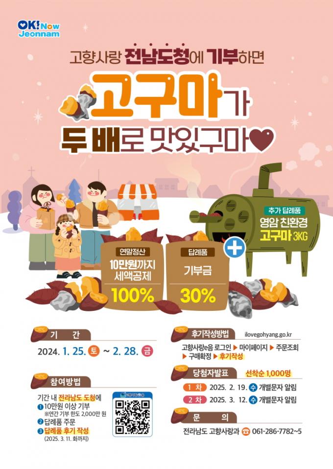 [È£³²´º½º¶óÀÎ = ¼ÀºÈ« ±âÀÚ] Àü¶ó³²µµ°¡ À»»ç³â »õÇØ¸¦ ¸Â¾Æ ¿À´Â 28ÀϱîÁö °íÇâ»ç¶û±âºÎÁ¦ ´ä·Êǰ Èı⸦ ÀÛ¼ºÇÏ¸é ¿µ¾Ï ģȯ°æ °í±¸¸¶¸¦ Ãß°¡·Î Á¦°øÇÏ´Â À̺¥Æ®¸¦ ½Ç½ÃÇÑ´Ù°í ¹àÇû´Ù.