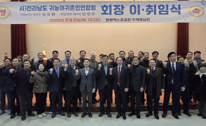 ÀÌ¡¤ÃëÀÓ½ÄÀº ±è¸í½Å Àü³²µµ Àα¸Ã»³âÀ̹α¹Àå, ÇÔÆò±º¼ö, ÇÔÆò±ºÀÇȸ ÀÇÀå, Àü³²µµÀÇ¿ø µî 200¿© ¸íÀÌ Âü¼®ÇÑ °¡¿îµ¥ 2022³âºÎÅÍ 3³â°£ ¿Á¤°ú Çå½ÅÀ¸·Î ¿¬ÇÕȸ¸¦ À̲ö Á¦3´ë ±è¿Áȯ ȸÀåÀÇ ³ë°í¸¦ ±â¸®°í, Á¦4´ë ȸÀåÀ¸·Î »õ·Î ÃëÀÓÇÏ´Â ±è¹ÎÁÖ ¿¬ÇÕȸÀåÀ» ÃàÇÏÇÏ´Â ÀÚ¸®·Î ÁøÇàµÆ´Ù.