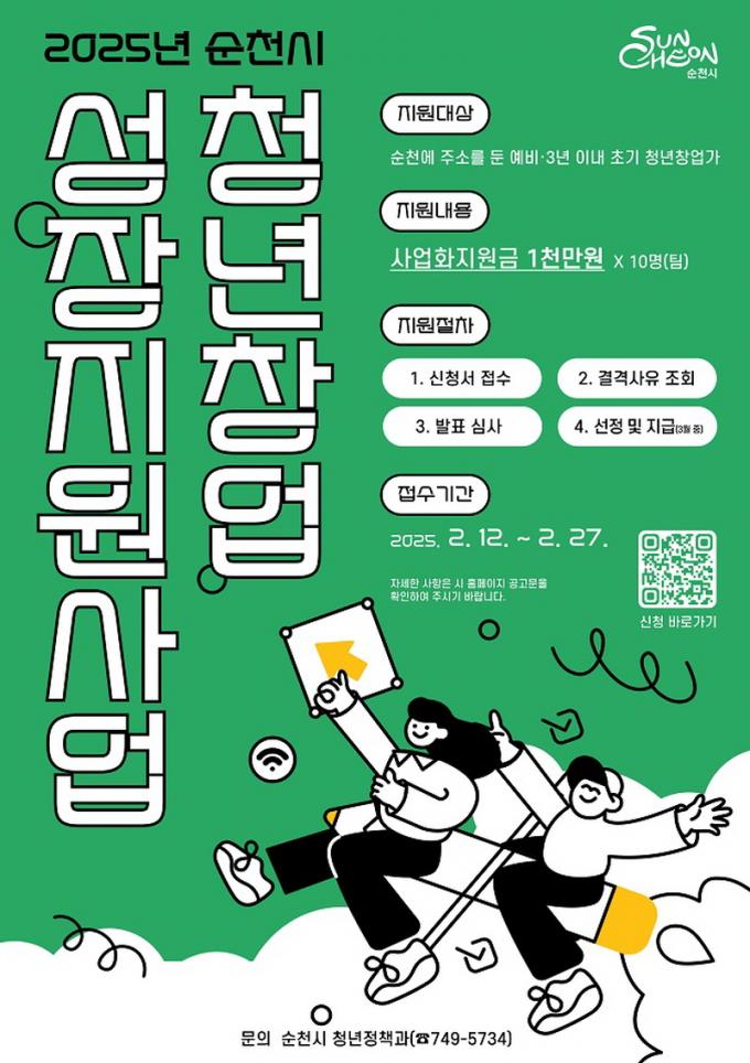 [È£³²´º½º¶óÀÎ = ¼ÀºÈ« ±âÀÚ] ¼øÃµ½Ã â¾÷¿¬´çÀº ¿À´Â 27ÀϱîÁö ¡®2025³â ¼øÃµ½Ã û³ââ¾÷ ¼ºÀåÁö¿ø»ç¾÷¡¯¿¡ Âü¿©ÇÒ Ã»³ââ¾÷°¡ 10¸í(ÆÀ)À» ¸ðÁýÇÑ´Ù°í ¹àÇû´Ù.