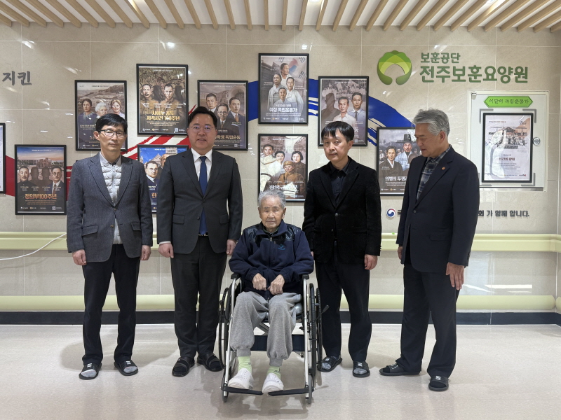 [È£³²´º½º¶óÀÎ = ¼ÀºÈ« ±âÀÚ] ÀüºÏƯº°ÀÚÄ¡µµ´Â Á¦106ÁÖ³â 3.1ÀýÀ» ¸Â¾Æ 18ÀÏ ÀüÁÖº¸ÈÆ¿ä¾ç¿øÀ» ¹æ¹®ÇØ µµ³» À¯ÀÏÇÑ »ýÁ¸ ¾Ö±¹Áö»çÀÎ À̼®±Ô(99) Áö»ç¸¦ ã¾Æ Á¸°æ°ú °¨»çÀÇ ¶æÀ» ÀüÇß´Ù.